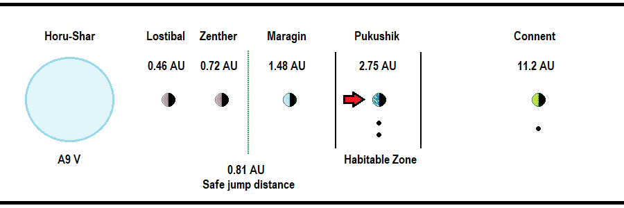 - REMARKS: A basic diagram of the Pukushik system, indicating the positions of all of the major worlds within the system.